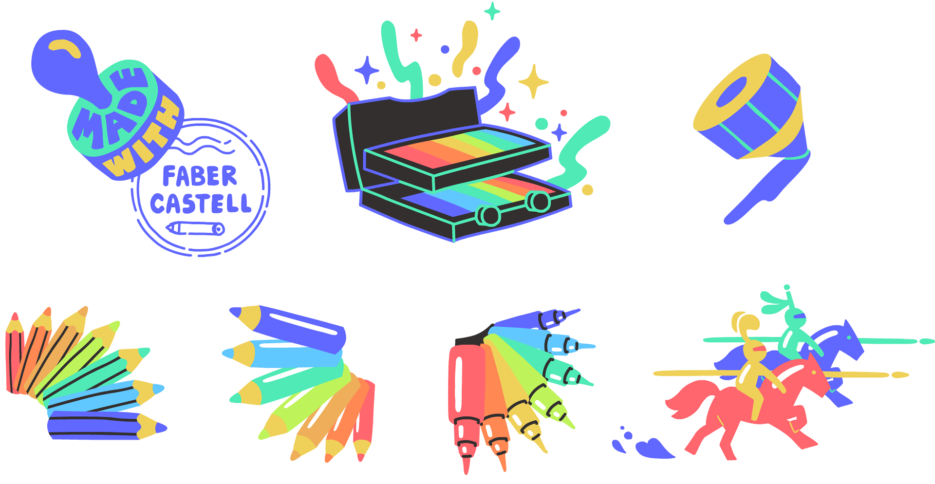 I was invited by Faber-Castell to design and animate a set of seven stickers that would be used on instagram stories. It's very common for traditional artists to post their drawings and tag Faber-Castell, the set was designed to both meet these users and promote Faber-Castell's products. It was very important that the set reflected the brand's main colors and had a handmade look, reminding us of the traditional art that is made with Faber's amazing supplies.